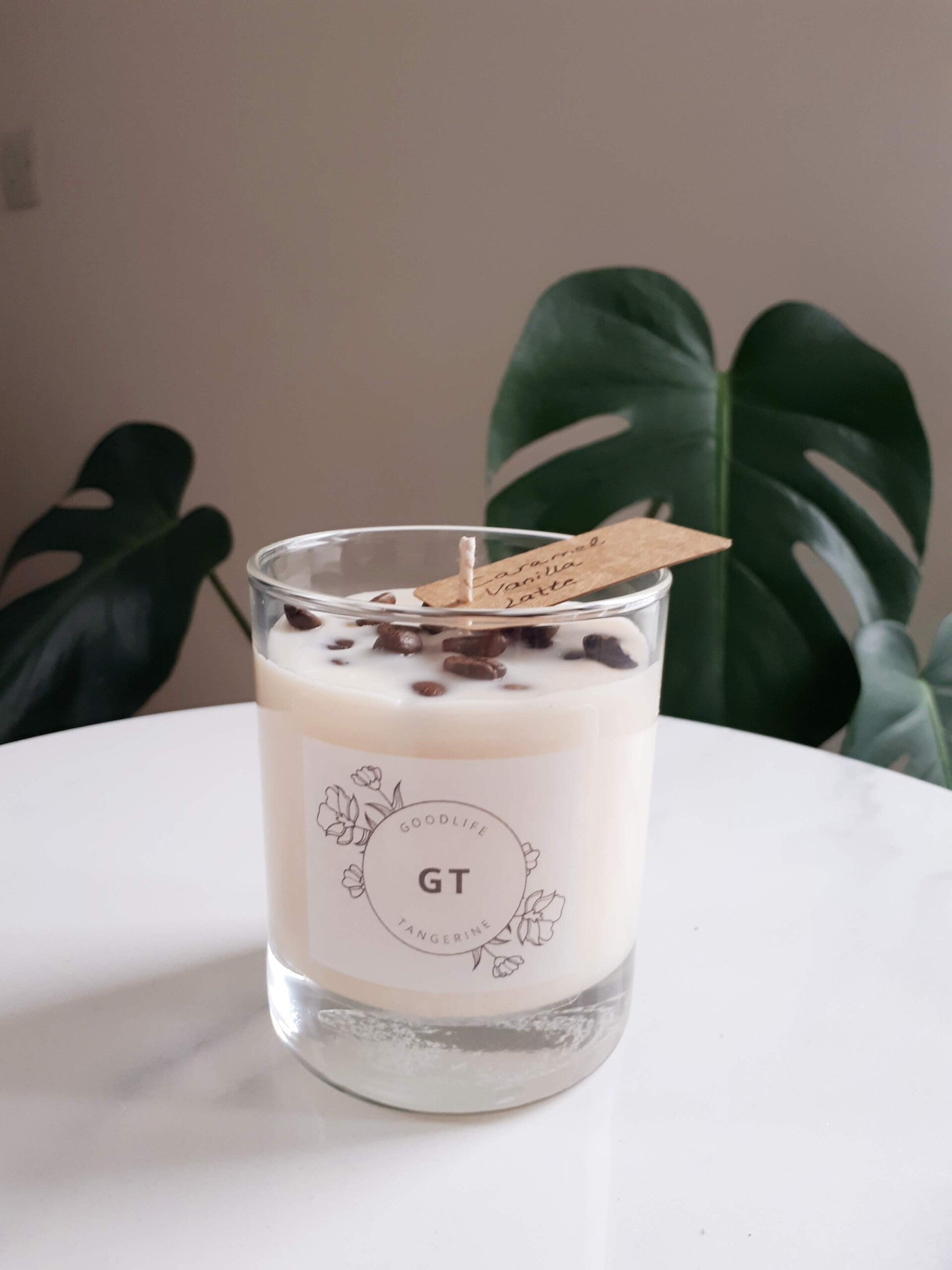 Transport yourself to your favourite coffee shop, having a warming cup of coffee and enjoying a piece of your favourite handmade cake. Fill your house with warmth and cosiness with this completely natural and environmentally friendly caramel vanilla latte scented candle.